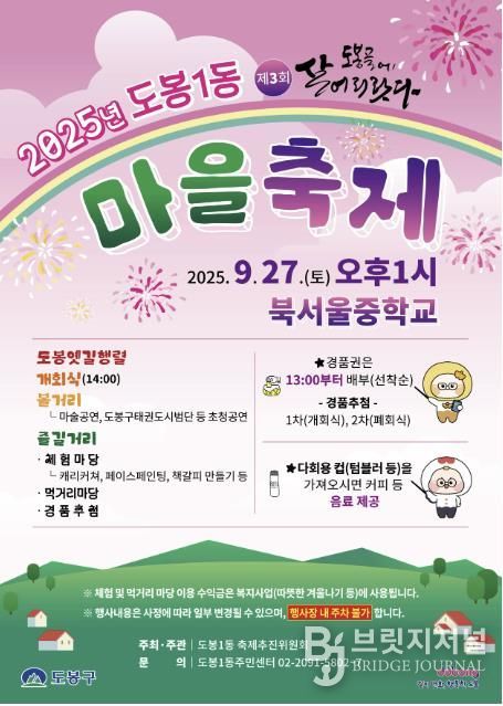 브릿지저널 김경미 기자 | 서울 도봉구 도봉1동이 오는 9월 27일 오후 1시 북서울중학교에서 도봉1동 마을축제 ‘제3회 도봉골에 살어리랏다’를 개최한다.