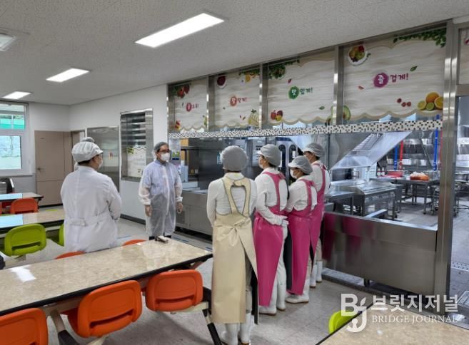 브릿지저널 김경미 기자 | 충청북도영동교육지원청은 2학기 개학을 맞아 23일 학교급식 위생·안전관리 강화 및 경각심을 고취 시키고자 이수초등학교 식생활관을 방문하여 간부공무원 학교급식 특별점검을 실시했다.