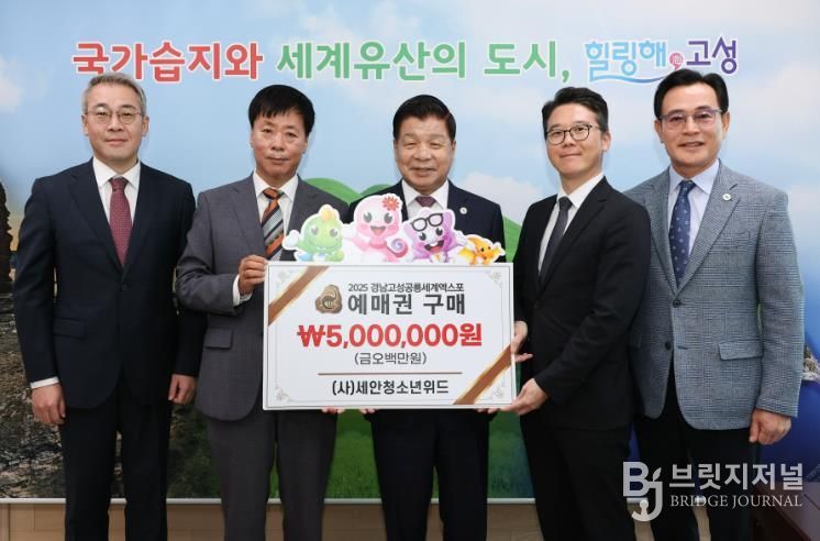브릿지저널 김경미 기자 | 고성군 유스호스텔 민간위탁 운영사인 사단법인 세안청소년위드가'2025 경남고성공룡세계엑스포'의 성공적인 개최를 위해 9월 24일 500만 원 상당의 예매권을 구매했다.