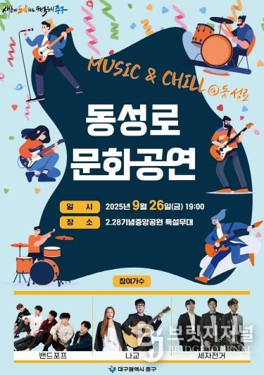 이번 공연은 도심 대표 관광명소인 동성로에서 시민과 관광객이 함께 어울리며 음악과 여유를 즐길 수 있도록 마련됐다. 젊음과 활력, 감성을 담은 무대를 통해 동성로만의 문화적 매력을 전할 예정이다.