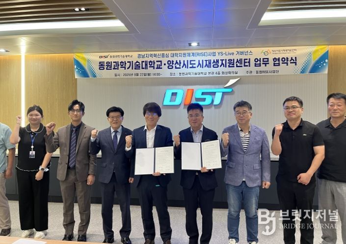 브릿지저널 김경미 기자 | 양산시도시재생지원센터(센터장 손재현)와 동원과학기술대학교(총장 장인성)는 지난 22일, 평생직업교육의 내실 있는 운영과 상호 협력체계 강화를 통해 지역사회와 산업 현장이 요구하는 인재를 양성하기 위해 '지역혁신중심 대학지원체계(RISE)사업 거버넌스 업무협약'을 체결했다.