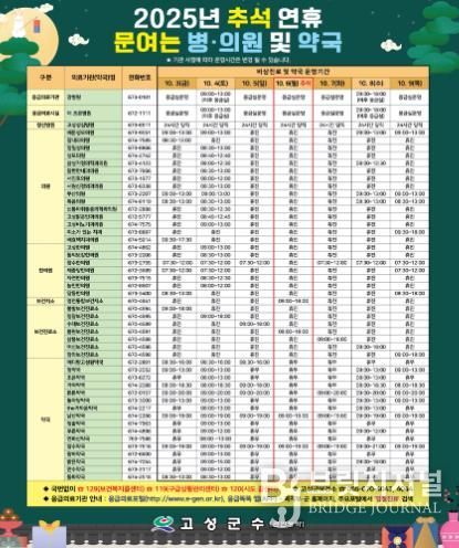 한편, 연휴 중 각종 불편사항 신고는 고성군청 당직실로 연락하면 된다.