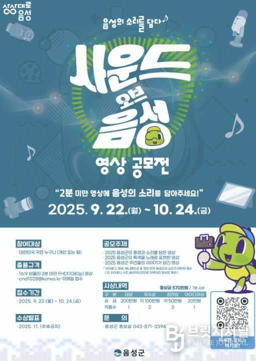 브릿지저널 김경미 기자 | 음성군은 오는 10월 24일까지 2025 사운드 오브 음성 영상 공모전을 개최한다고 밝혔다.