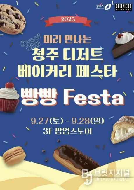 브릿지저널 김경미 기자 | ‘2025 빵빵 페스타’(부제 미리 만나는 2025 청주 디저트·베이커리 페스타)가 오는 27일부터 28일까지 이틀간 커넥트현대 청주 3층 팝업 스토어에서 개최된다.