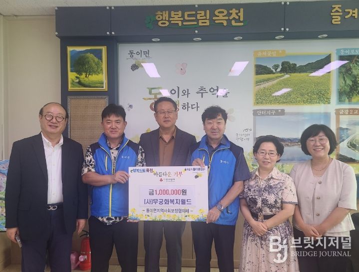 브릿지저널 김경미 기자 | (사)무궁화복지월드 대전광역시 봉사단(단장 김정중)이 지난 24일 동이면과 이원면 지역사회보장협의체에 각각 100만 원씩, 총 200만 원의 이웃돕기 성금을 기탁했다.