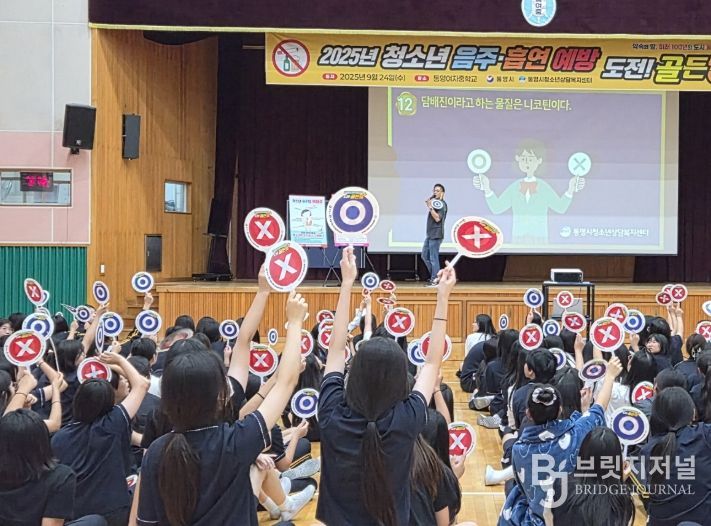 브릿지저널 김경미 기자 | 통영시는 지난 24일 통영여자중학교 학생 400여 명을 대상으로 ‘음주·흡연 예방 도전 골든벨’프로그램을 진행했다.