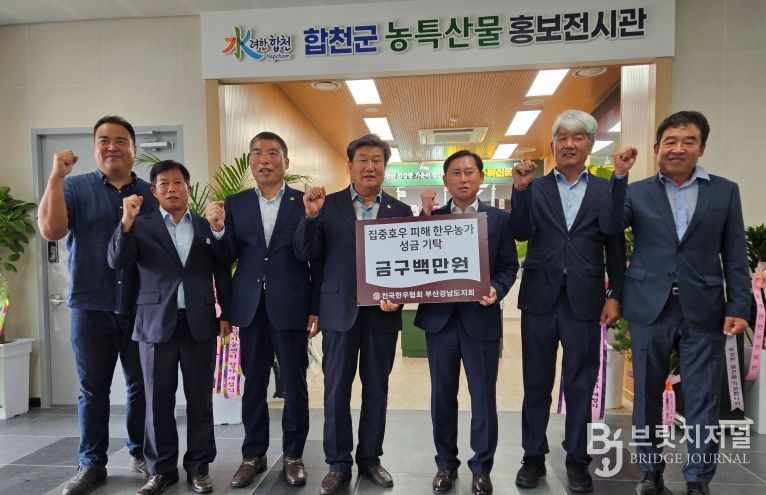 브릿지저널 김경미 기자 | 전국한우협회 부산경남도지회(지회장 한기웅)는 24일 합천군농업기술센터(소장 이동률)을 방문하여 집중호우로 피해를 입은 합천군 한우협회 소속 한우농가를 돕기 위해 성금 9백만원을 기탁 했다.