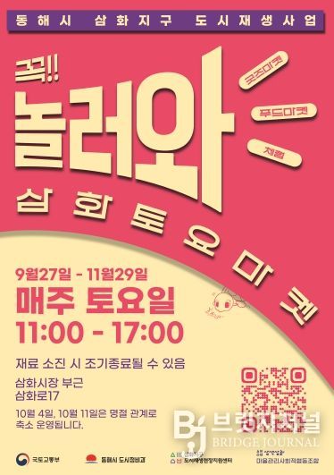 지역고유의 특성과 도시재생 가치를 담아낸 특별한 플리마켓, ‘놀러와, 삼화토요마켓’이 오는 9월 27일부터 11월 29일까지 매주 토요일(오전 11시~오후 5시) 개최된다.