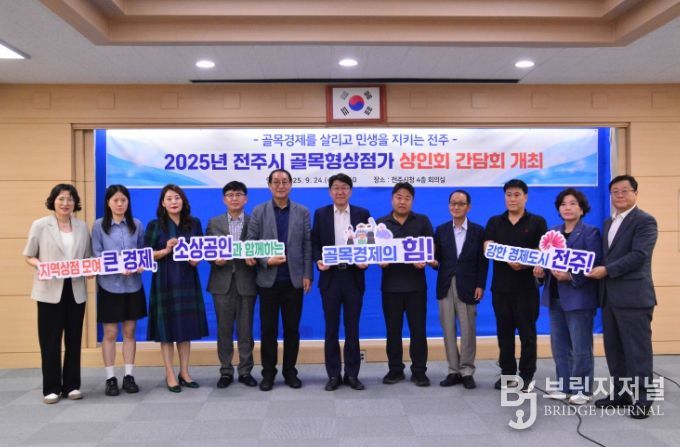 브릿지저널 윤나영 기자 | 전주시는 지난 24일 시청 4층 회의실에서 우범기 전주시장, 유장명 전주시 소상공인연합회장, 관내 골목형상점가 상인회 대표 등 15명이 참석한 가운데 ‘2025년 전주시 골목형상점가 상인회 간담회’를 진행했다.