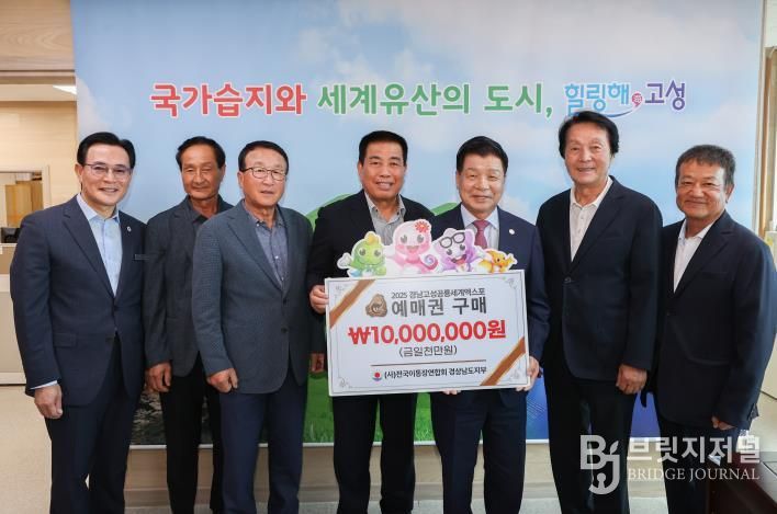 브릿지저널 김경미 기자 | 고성문화관광재단은 (사)전국 이통장연합회 경상남도지부가'2025경남고성공룡세계엑스포'의 성공적인 개최를 위해 지난 9월 23일 예매권 1천만 원어치를 구매했다고 밝혔다.