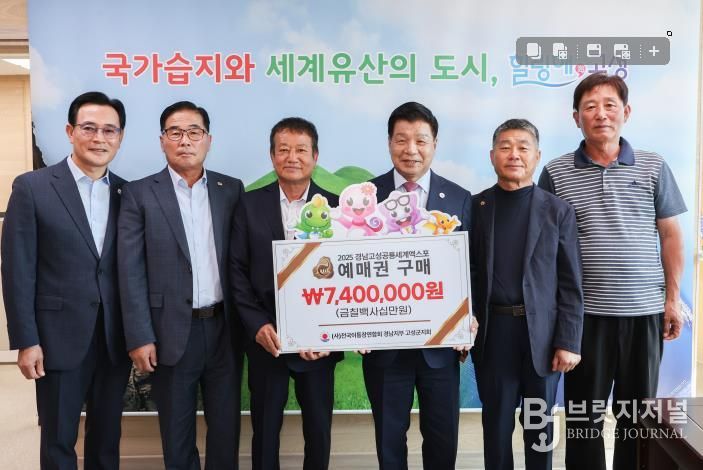 브릿지저널 김경미 기자 | 고성문화관광재단은 (사)전국 이통장연합회 경상남도지부 고성군지회가 '2025경남고성공룡세계엑스포'의 성공적인 개최를 위해 9월 23일 740만 원 상당의 예매권을 구입했다고 밝혔다.