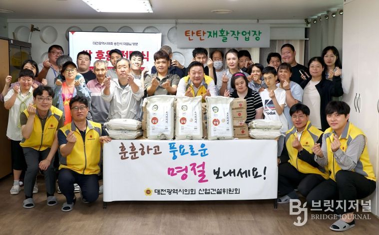 브릿지저널 정보영 기자 | 대전시의회 송인석 산업건설위원장(국민의힘, 동구1)은 추석 명절을 앞둔 25일 동구 소재 장애인 재활시설 탄탄재활작업장(원장 이미정)을 방문해 위문품을 전달했다.