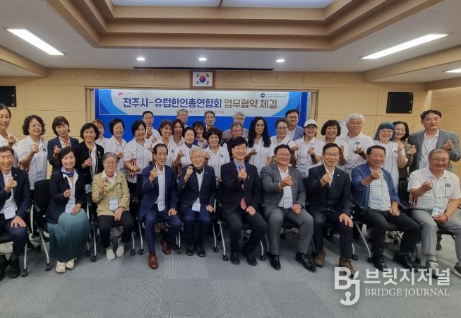 시는 25일 전주시청에서 윤동욱 전주 부시장, 김영기 회장을 비롯한 유럽한인총연합회 임원단이 참석한 가운데 경제·문화관광·스포츠 분야의 교류 활성화와 상호협력을 위한 업무협약을 체결했다.