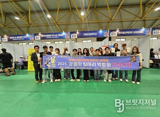 브릿지저널 윤나영 기자 | 강원도립대학교는 9월 25일 강릉시에서 열린 '2025 강릉시 일자리 박람회'에 재학 중인 외국인 유학생 19명과 함께 참여했다.