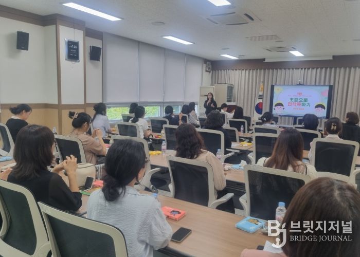 브릿지저널 김경미 기자 | 충청북도청주교육지원청은 9월 25일 관내 유․초이음교육 운영 유치원 교사들을 대상으로 유‧초 이음 역량강화 연수 및 사례 나눔을 실시했다. 이번 연수에는 관내 43명의 유치원 교사 중 40명이 참석하여 높은 참여율을 보였다.