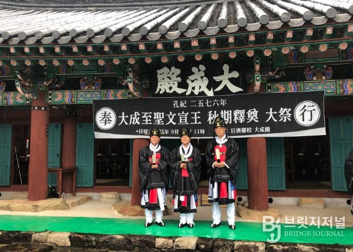 브릿지저널 김경미 기자 | 음력 8월의 상정일(上丁日)인 9월 25일(수) 거제향교(전교 김평철)에서 시민 및 유림 50여 명이 참석한 가운데 석전대제를 진행했다.