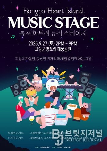 브릿지저널 윤나영 기자 | 고성군과 고성문화재단은 오는 9월 27일 토요일 오후 2시부터 밤 9시까지 토성면 봉포리 해풍공원에서 ‘제3회 봉포하트섬 뮤직 스테이지’를 개최한다.