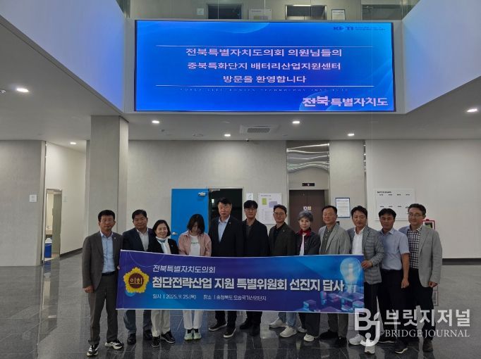 브릿지저널 윤나영 기자 | 전북특별자치도의회 전북특별자치도 첨단전략산업 지원 특별위원회(위원장 김동구)는 25일 충북 청주 오송읍·오창읍 일원의 바이오 및 배터리산업 기관·기업을 찾아 벤치마킹했다.