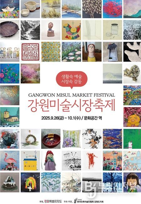브릿지저널 윤나영 기자 | 강원특별자치도는 (사)한국민족미술인협회 강원지회와 함께 '2025년 강원미술시장축제'를 9월 26일부터 10월 1일까지 6일간 남춘천역 1층 문화공간에서 개최한다.