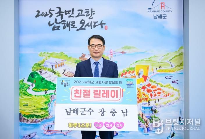 브릿지저널 김경미 기자 | 남해군은 ‘2025년 고향사랑 방문의 해’를 맞이하여 ‘친절 남해’ 이미지를 제고하고 민관협력으로 범군민 친절 마인드를 함양하기 위해 군민 모두가 공감하고 참여하는 ‘친절릴레이 캠페인’을 시작한다고 밝혔다.