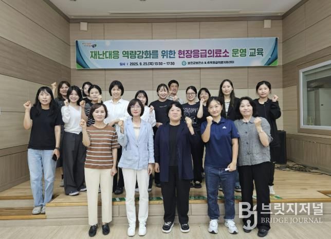 브릿지저널 김경미 기자 | 충북 보은군보건소는 지난 25일 보건소 대회의실에서 보건소와 보은소방서 직원 30명을 대상으로 ‘재난대응 역량강화 현장응급의료소 운영 교육’을 실시했다.