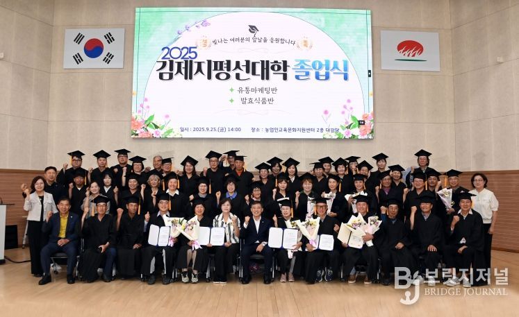 브릿지저널 윤나영 기자 | 김제시는 지난 25일 농업인교육문화지원센터에서 '2025학년도 김제시지평선대학 졸업식'을 80여명이 참여한 가운데 개최했다고 밝혔다