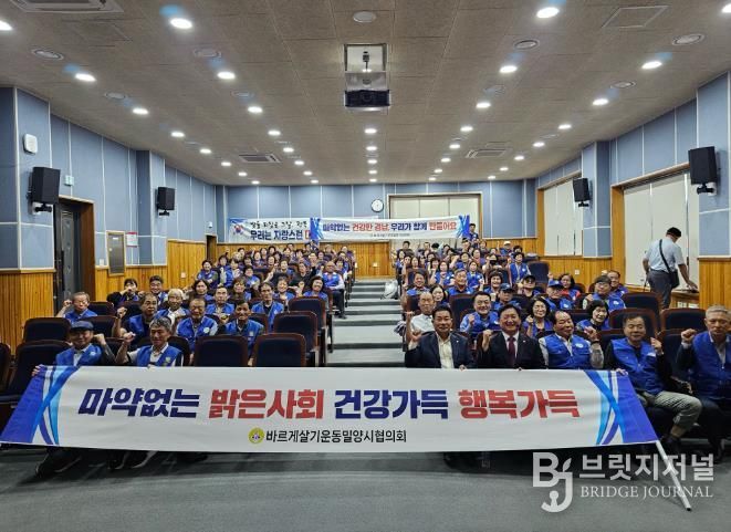 브릿지저널 김경미 기자 | 바르게살기운동 밀양시협의회는 밀양시여성회관에서 임원, 읍·면·동 위원장과 위원 등 120여 명이 참석한 가운데 도덕성 회복 강연회 및 마약 퇴치 캠페인을 개최했다고 26일 밝혔다.