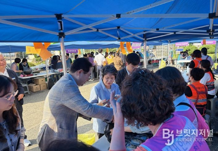 이날 바자회에서는 ▶ 찹쌀, 표고버섯 등 농특산물 ▶ 화장지, 칫솔 등 생활용품 ▶ 참기름, 미역, 만두 등 식품류를 저렴한 가격에 판매했으며 ▶ 잔치국수, 김밥 등 먹거리 장터도 운영했다.