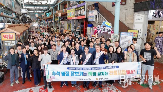 브릿지저널 정보영 기자 | 경상북도의회는 9월 26일 추석명절을 맞아 대규모 국제행사인 APEC 정상회의를 앞두고 있는 경주시를 방문하여 1900년대 초부터 오랜역사를 자랑하고 있는 중앙시장을 찾아 ‘전통시장 장보기 행사’를 가졌다.