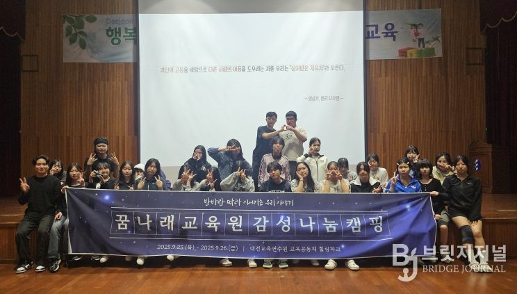 브릿지저널 정보영 기자 | 대전교육연수원 부설 꿈나래교육원은 9월 25일부터 26일까지 충청남도 공주시 반포면 대전교육연수원 교육공동체 힐링파크에서 1박 2일 감성캠핑을 운영했다.