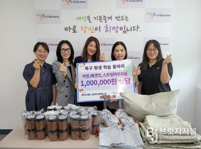 브릿지저널 윤나영 기자 | 울산 북구 평생학습관 학습동아리 '별하'와 '착한 바느질'이 26일 북구종합사회복지관에 전통장과 바느질 물품을 기부했다.