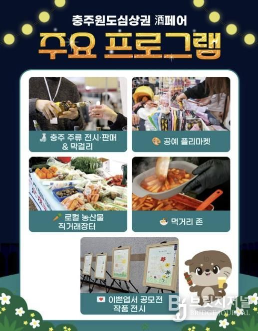 특히 충주 지역 특산품인 술과 공예품, 농산물과 먹거리는 물론, 가족 단위 방문객들을 위한 키링 만들기, 나만의 장바구니 제작, 인생네컷 촬영 존 등 여러 체험 프로그램도 운영돼 남녀노소 모두가 즐길 수 있는 축제로 꾸며진다.