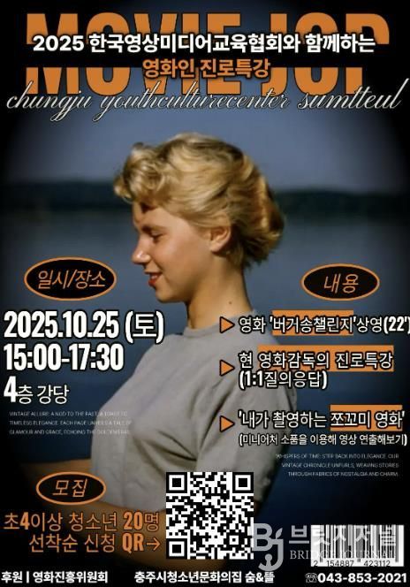 브릿지저널 김경미 기자 | 충주시청소년문화의집 숨·뜰은 청소년들에게 영상미디어 분야와 영화감독에 대한 진로 탐색의 기회를 제공하고자 오는 10월 25일 영화인 진로 특강 프로그램을 개최한다.