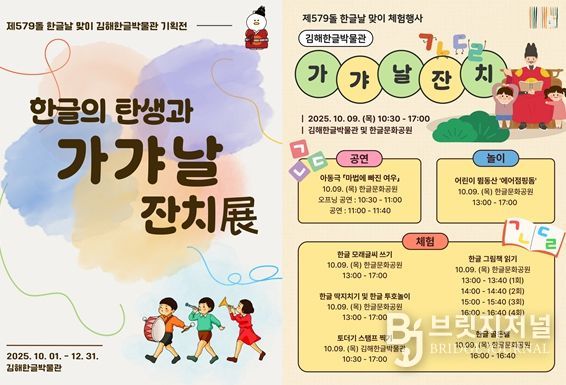 브릿지저널 김경미 기자 | 김해시는 김해한글박물관이 제579돌 한글날을 맞아 ‘한글의 탄생과 가갸날 잔치’를 주제로 기획전시와 문화행사를 개최한다고 29일 밝혔다.