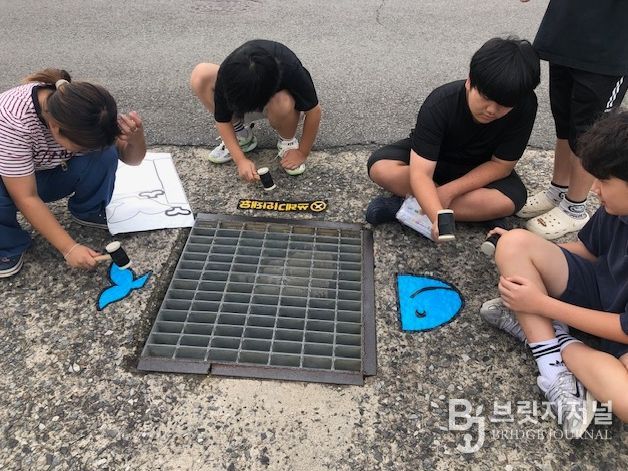 ‘바다의 시작’ 캠페인은 담배꽁초 및 쓰레기 투기를 방지하기 위해 배수구에 고래모양 스티커를 부착하는 활동이다.