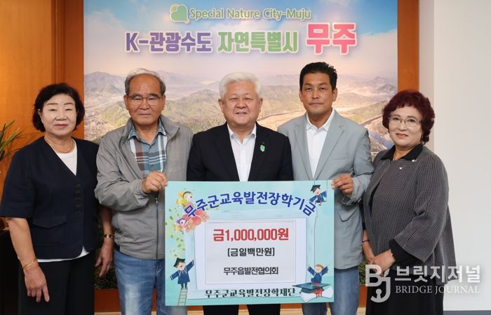 브릿지저널 윤나영 기자 | 무주군은 무주읍발전협의회가 지난 29일 (재)무주군교육발전장학재단에 장학금 1백만 원을 기탁했다고 밝혔다.