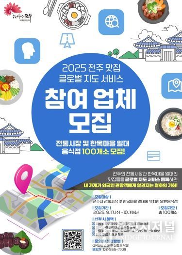 시는 전주를 찾는 외국인 관광객들이 지역 음식점을 더욱 편리하게 이용하고, 음식점들의 글로벌 경쟁력을 강화하기 위해 ‘2025년 전주 맛집 글로벌 지도 서비스 지원사업’을 추진한다고 29일 밝혔다.