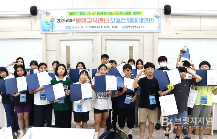 브릿지저널 정보영 기자 | 경상북도영덕교육지원청 산하 영덕발명교육센터가 지난 8월 30일부터 9월 27일까지 매주 토요일 운영한 특별과정 ‘소프트웨어개발반’을 성공적으로 마무리했다. 관내 초등학교 5학년부터 중학생 20명이 참여해 미래 교육에 대한 높은 관심을 확인할 수 있었다.