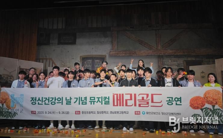 브릿지저널 김경미 기자 | 함안군보건소는 2025년 정신건강의 날(10월 10일)을 기념해 지난 24일부터 26일까지 3일간 관내 중앙초등학교, 칠성중학교, 경남로봇고등학교 재학생과 교직원 등 250여 명을 대상으로 찾아가는 생명존중 뮤지컬 ‘메리골드’를 공연했다고 밝혔다.