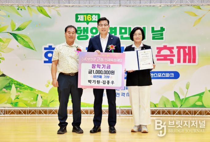 브릿지저널 윤나영 기자 | 지난 9월 26일 부안군 스포츠파크 실내체육관에서 열린 제16회 행안면민의 날 화합한마당 축제에서 지역 인재 육성을 위한 뜻깊은 나눔이 이어졌다.