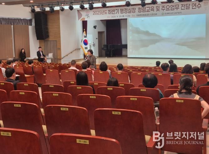 브릿지저널 정보영 기자 | 경상북도김천교육지원청은 9월 29일 13시 학생문화예술센터 드림마루에서 관내 초·중·고등학교 행정실장을 대상으로 청렴교육 및 주요업무 전달연수를 개최했다.