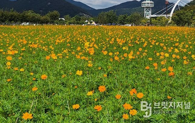 브릿지저널 김경미 기자 | 가을의 시작과 함께 양산 황산공원 중부광장이 황화 코스모스로 물들었다. 청명한 가을 하늘을 배경으로 활짝 핀 황화 코스모스는 사진 촬영 명소로 인기를 끌고 있다.
