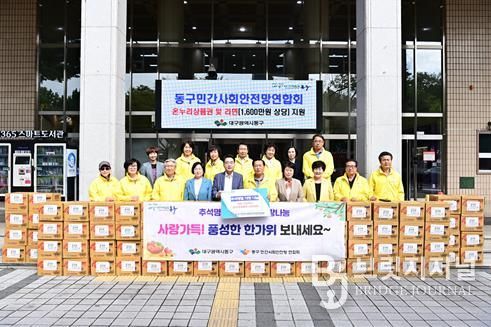 브릿지저널 김진석 기자 | 민간사회안전망연합회는 지난 29일 추석을 맞아 보훈 세대, 저소득 취약계층을 위해 온누리상품권 640만원과 라면 330박스(980만원 상당)를 동구청에 전달했다.