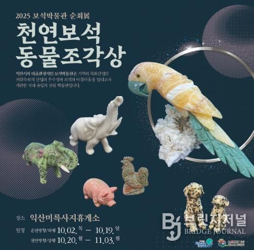 브릿지저널 윤나영 기자 | 익산시 보석박물관은 추석 연휴가 시작되는 10월 2일부터 11월 3일까지 익산미륵사지휴게소(양방향)에서 '천연보석 동물조각상' 순회전시를 진행한다.