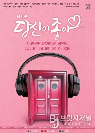 브릿지저널 김경미 기자 | 의령군은 음악극 ‘당신이 좋아’를 오는 10월 24일 오후 7시 30분 의령군민문화회관 공연장에서 선보인다고 밝혔다.