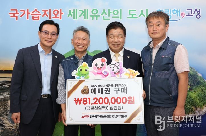 브릿지저널 김경미 기자 | 경남 고성문화관광재단은 전국공무원노동조합 경남지역본부(본부장 강수동)가'2025경남고성공룡세계엑스포'의 성공적인 개최를 위해 8,120만 원 상당의 예매권 구매를 적극 지원했다고 밝혔다.