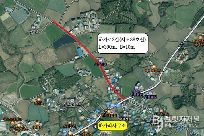 브릿지저널 정보영 기자 | 제주시는 애월읍 하가리 시도 38호선(L=390m, B=10m) 구간에 대한 도로 확·포장 공사를 마무리하고 9월 준공했다.