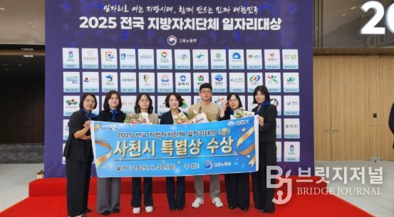 브릿지저널 김경미 기자 | 사천시는 30일 청주 오스코에서 열린 고용노동부의 ‘2025년 전국 지방자치단체 일자리대상’에서 2년 연속 일자리 공시제 부문 ‘특별상’을 수상하는 쾌거를 이뤘다.