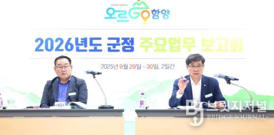 브릿지저널 김경미 기자 | 함양군은 9월 29일부터 30일까지 2일간 군청 소회의실에서 ‘2026년도 군정 주요 업무 보고회’를 개최했다.