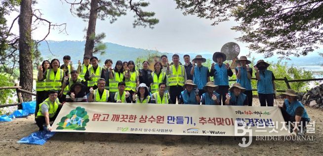 브릿지저널 김경미 기자 | 청주시 상수도사업본부와 한국수자원공사는 추석을 앞둔 30일 귀성객 등에게 더 맑고 깨끗한 상수원을 공급하기 위해 상수원보호구역인 대청호 일원에서 도로변 쓰레기를 수거하는 환경 정비 활동을 추진했다.